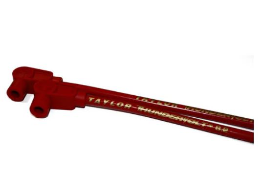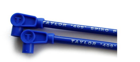 wires with gold lettering. Plug & coil boots are black. Includes 18" and 7" wires with 90° plug boots and 180° (straight) coil boots. According to Taylor these are the best spark plug wires money can buy. Made of a 40 Ohm/ft. Ferrite spiral core with a blend of copper nickel alloy which is bonded by a conductive acrylic cover. Feature two layers of pure Zimplex silicone for 600°F (315°C) heat protection. Excellent RFI and EMI suppression and compatible with most ignition systems and electronic components. Comes with 100% silicone plug boots with double spring locking spark plug terminals that will resist vibrations. Note: Compatible with all H-D ignitions. If you have an aftermarket ignition, please check with manufacturer's ohm requirements. For very high ohm ratings you can use Taylor's Carbon Core wire sets. For magnetos and point ignitions Taylor's metallic core wire sets are recommended.