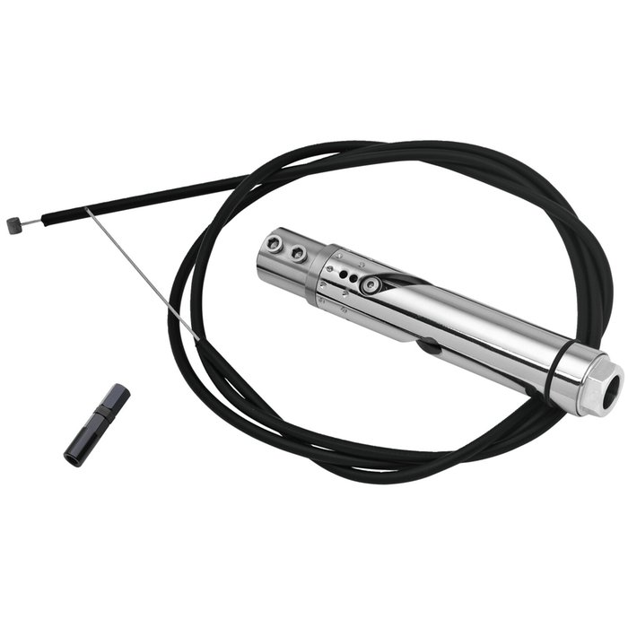 A heavy working throttle is not what you want. At Müller no less then 4 ball bearings and 2 PTFE bushings are used for a no friction, minimal play throttle experience. The narrow part that fits inside the handlebar is 22.3mm which can be machined in a lathe to the required diameter for a perfect fit. Single cable action. Installs with 2 included M6 bolts. Comes complete with installation instructions.