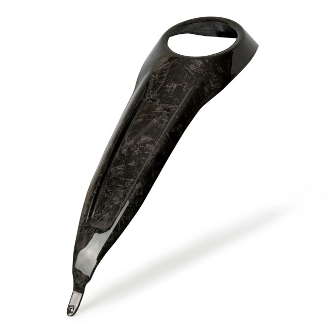 Forged carbon. Made from chopped carbon fiber strands mixed with resin and compressed in a mold. The result is a material that looks more like marble or camouflage, no two are alike, without a directional weave. Designed for those that like the look and weight reduction of genuine carbon fiber. The perfect addition to any Club Style or performance bike. Bolt-on installation, simple and hassle-free replacement of the stock dash cover. EU made. - Ultra light weight - Manufactured from top quality carbon fiber - Gloss UV stable surface - Mount holes are pre-drilled - Bolt-on replacement for stock console