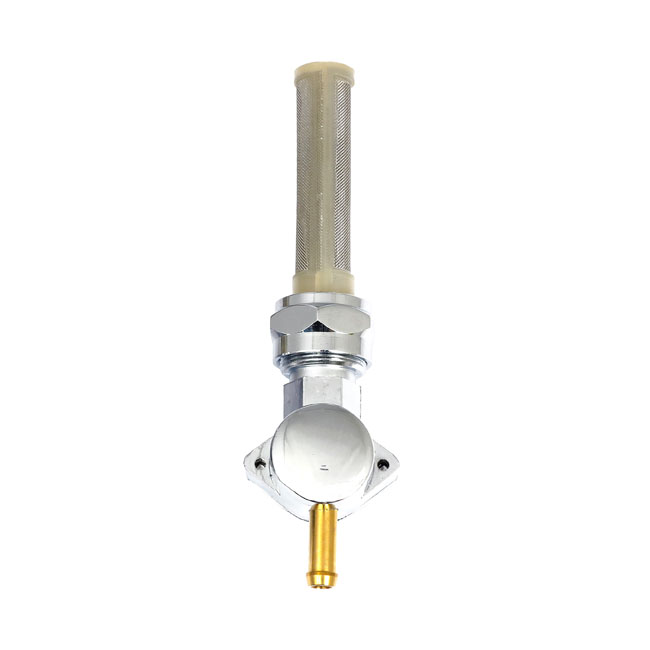 Chrome; down outlet; 1/4" (6.35mm) fuel hose; with filter & reserve; 22mm thread with nut