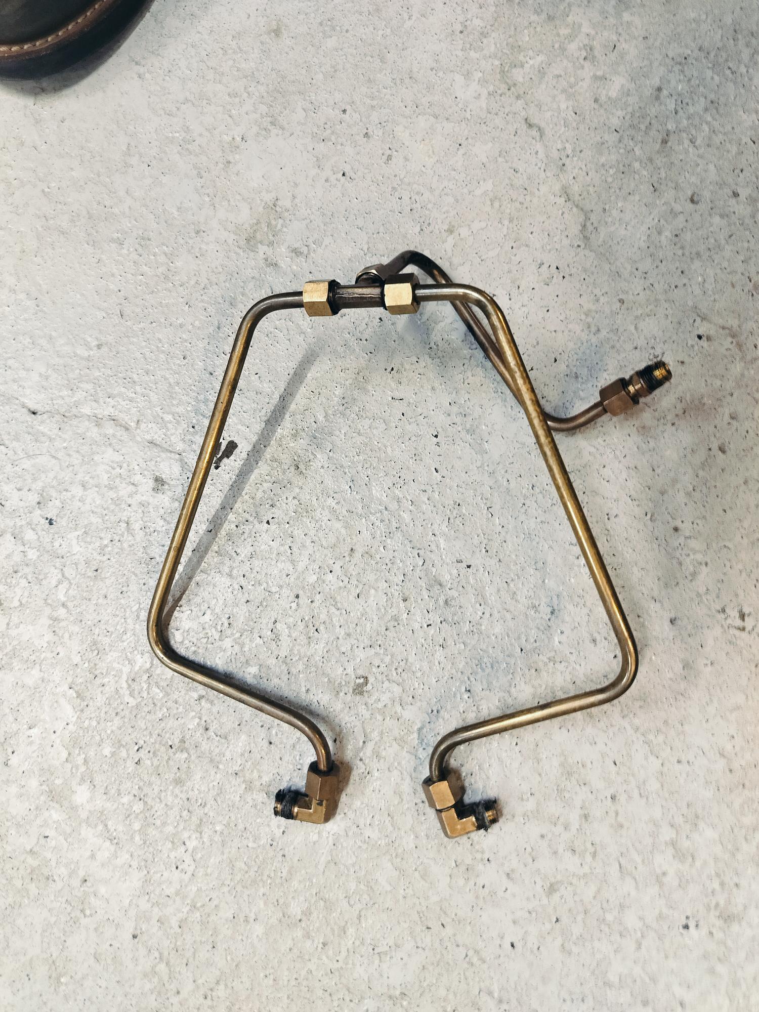 Paughco, 'Old STF' dual rocker box oil lines. Brass, brugt.