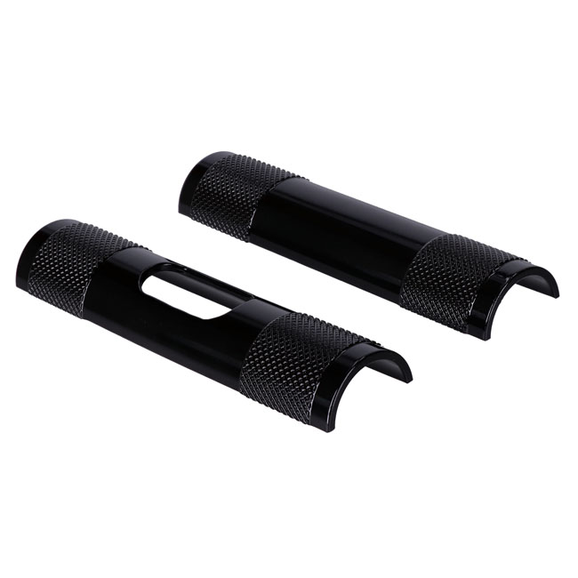 Riser sleeves / adapter sleeves / riser shims / handlebar shims / riser fillers are used as filler to reduce riser diameter. Used to make 1" (25.4mm) handlebars fit larger 1-1/4" (32mm) diameter risers. Designed for use with Harley type risers that are equipped with a single top clamp. Set includes one top and one lower reducer.
