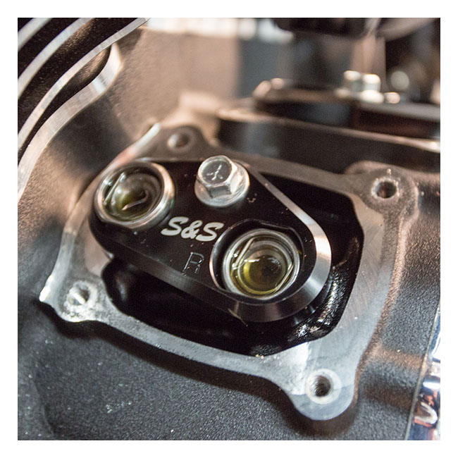 Black hard anodized aluminum construction, sold in a set of 2. Stock tappet guides / anti-rotation devices are made of plastic and could allow tappets to twist in heavy stress, high RPM situations. These S&S tappet cuffs are precision CNC machined from billet aluminum that is black hard anodized. They offer superior strength, stability and perfect alignment in all circumstances without obstructing the vertical tappet movement in any way. Individually marked for front or rear use. An easy performance upgrade when doing a tappet or cam change. This set is an upgrade for the OEM 17900035 & 17900034 'anti-rotation devices'. Note: Due to variations between cam and tappet manufacturers, be sure to check tappet to tappet cuff clearance.